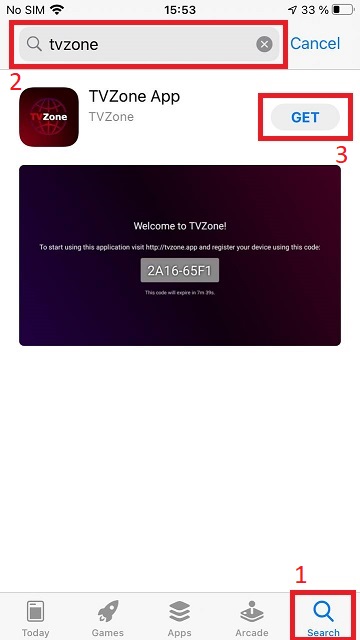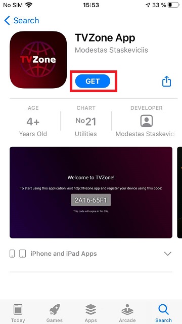 Search for "TVZone" and click on button saying "GET"